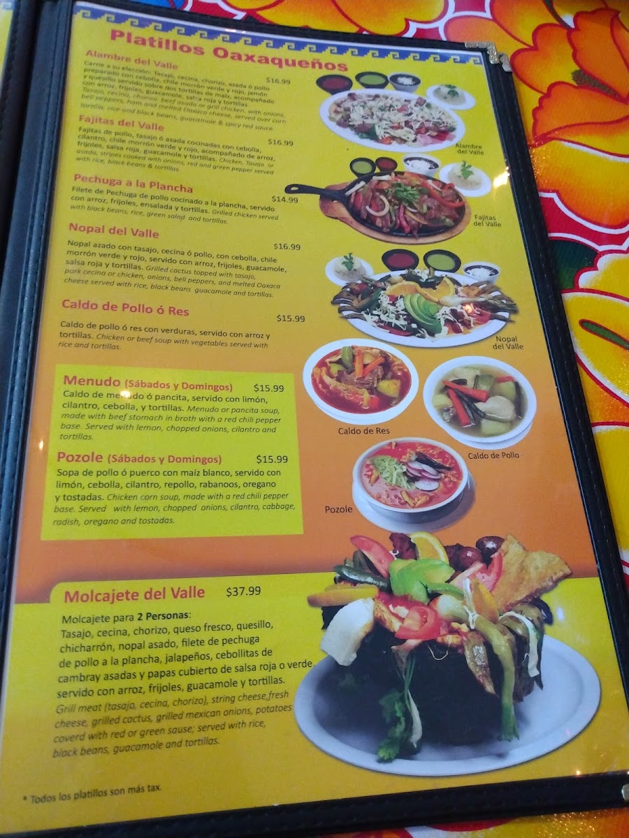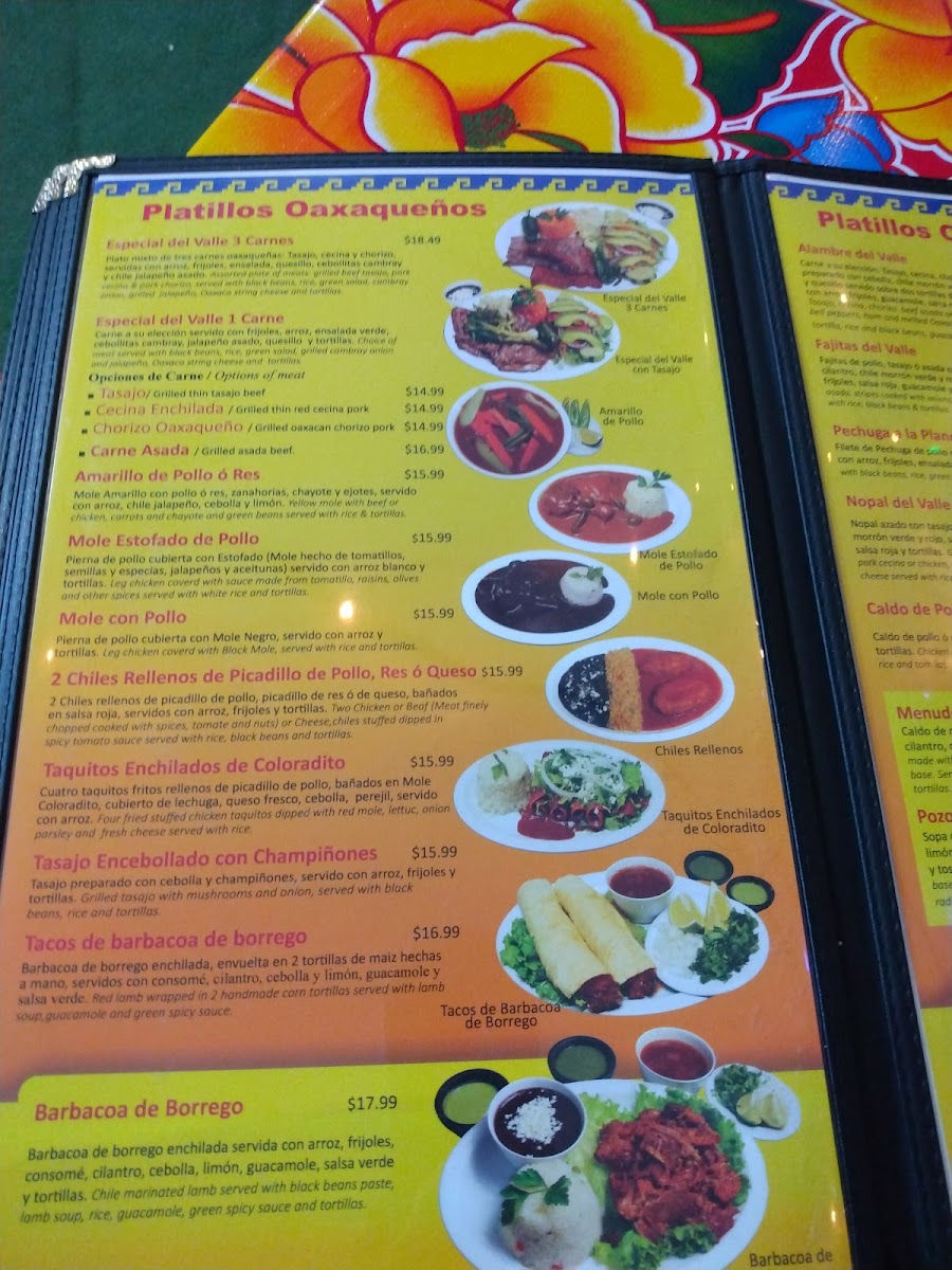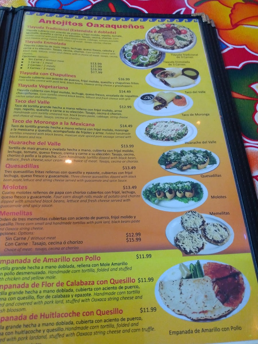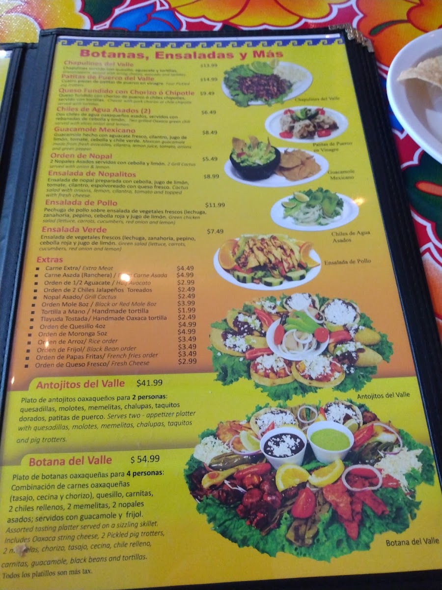 - Platillos Oaxaqueños: The Especial Del Valle features a mouthwatering trio of grilled meats served with rice, frijoles, and fresh tortillas, creating a feast for only $16.99.